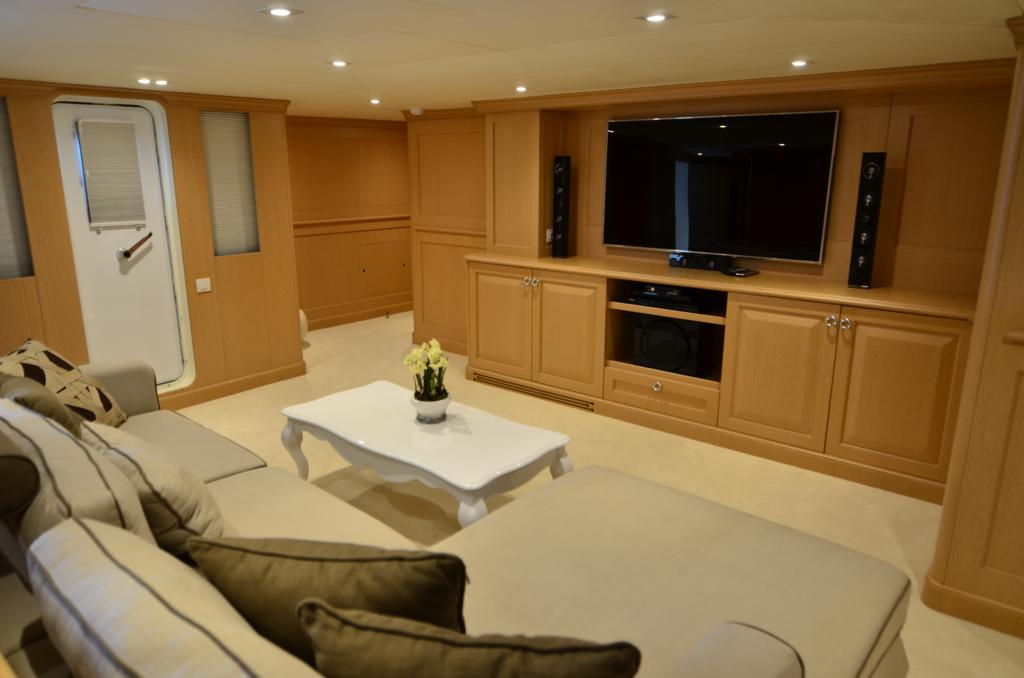 The exterior design is the work of the Orkun shipyard and offers a tri-deck layout, ample deck space and an optional helipad. The main deck features a large aft deck, with an alfresco dining option.