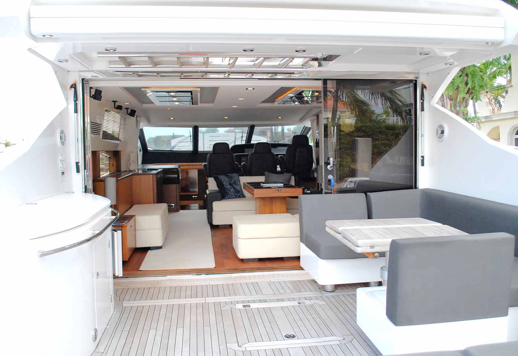 Other great features of the M/Y EAGLE II include a beautiful deck saloon with a u shaped lounge for relaxing which also has and extendable table for interior dining. Furhter forward, guests can watch the captain cruise to the next destination or perhaps even sit on one of the 3 Captain chairs.