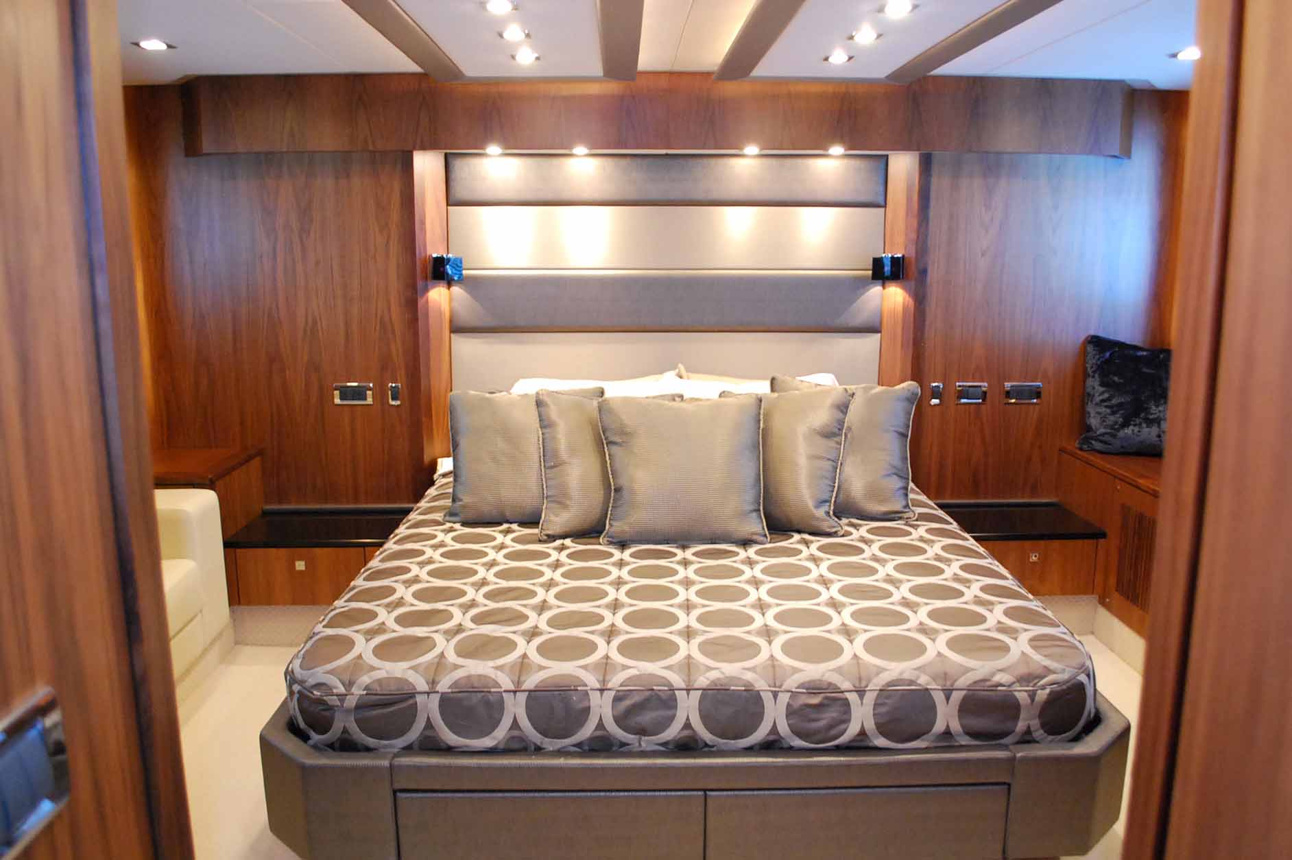 The EAGLE II motor yacht boasts a spacious aft deck with dining table, upholstered seating and wet bar, ideal for entertaining with an electric blind that offers full shade. There is also a sunbathing area forward.