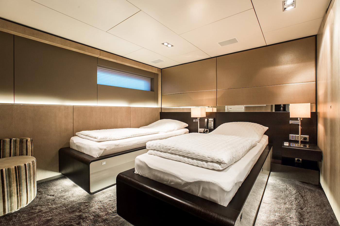 She boasts both the exterior as well as interior design by Egg and Dart, providing comfortable accommodation to up to 8 charter guests in 4 splendid cabins. These include a master cabin, a VIP cabin, as well as two guest cabins.