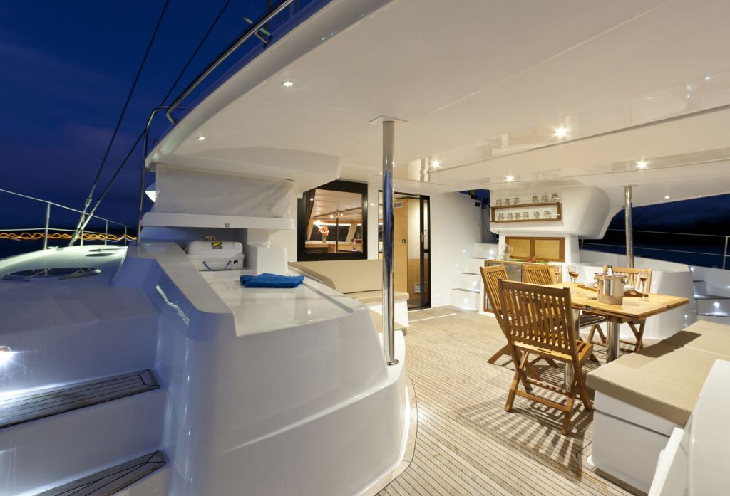 SILVOCHKA’s sheltered 25m² cockpit with alfresco dining table is a welcoming and ambient area for guests to relax. The cockpit also boasts an outdoor wetbar, equipped with sink, refrigerator, generous storage, helping to create the perfect summer saloon.
