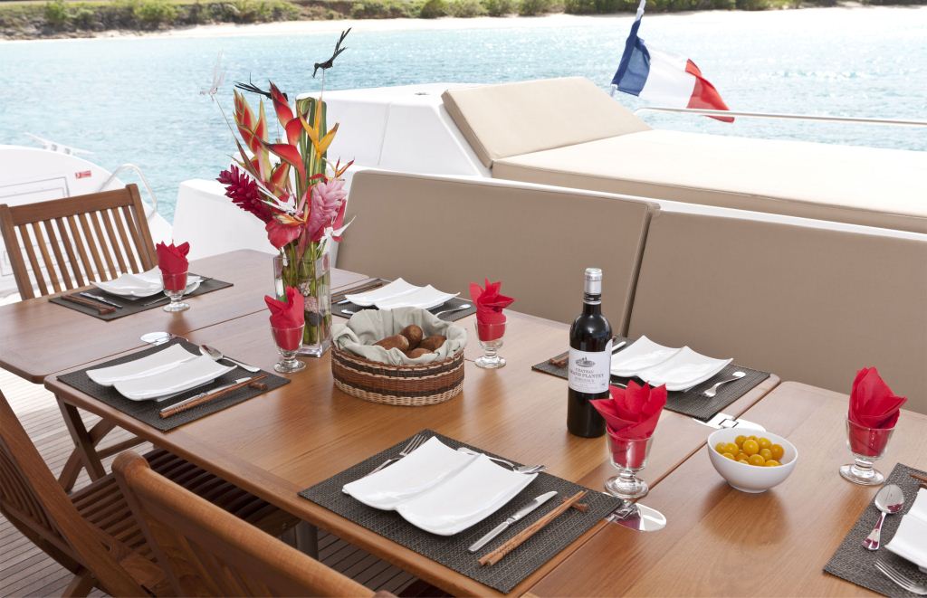 The main salon which includes the living area and formal dining area exudes a refined and modern yet relaxing ambience. While at anchor or at sea, the outstanding panorama is a brilliant feature of the Sanya 57 catamaran ...