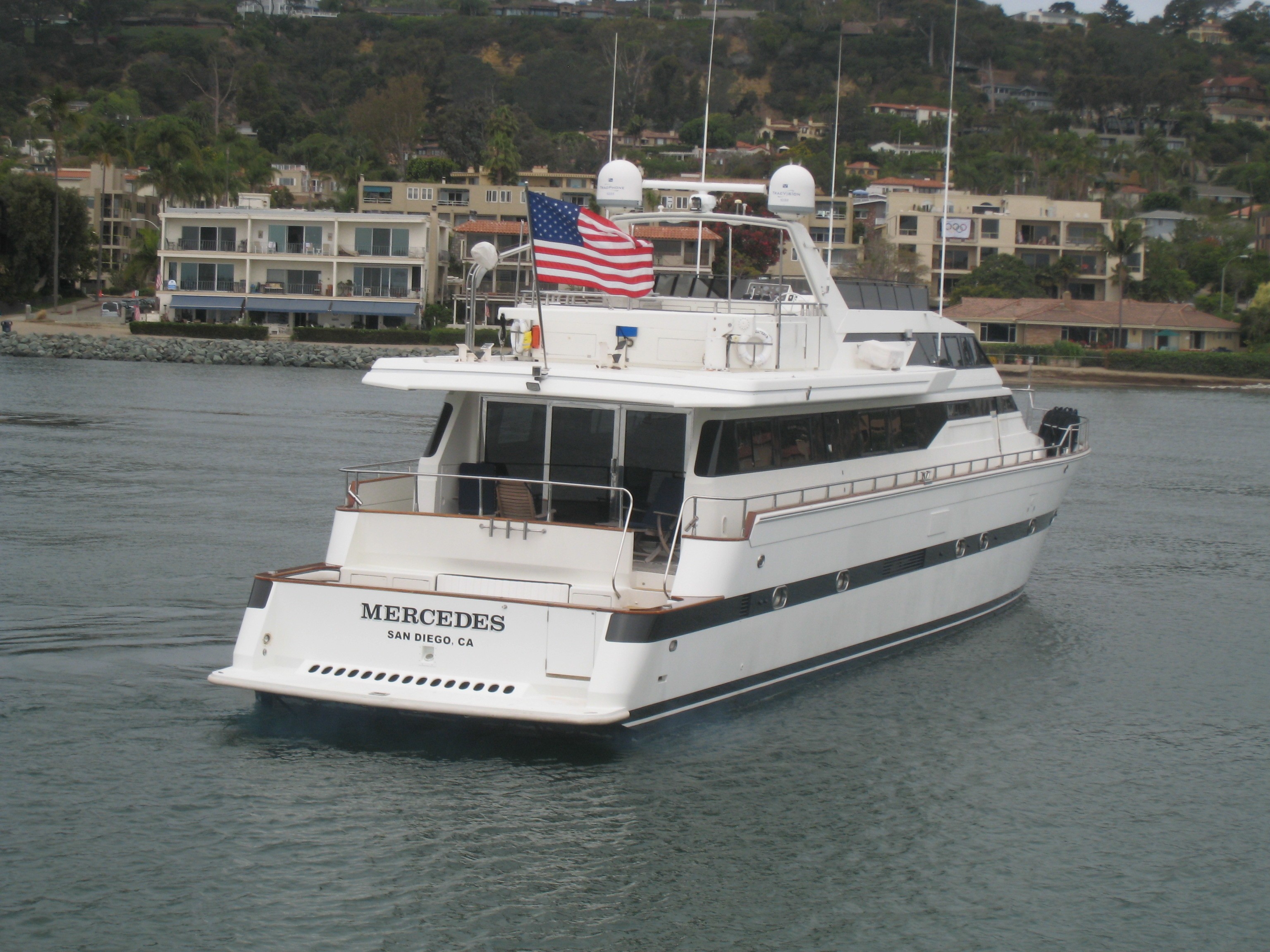 San Diego, California based motor yacht MERCEDES was built in 1987 by Versilcraft of Italy. M/Y MERCEDES measures 29.8m (98ft) and can accommodate up to 6 charter guests in 3 en-suite deluxe double cabins.