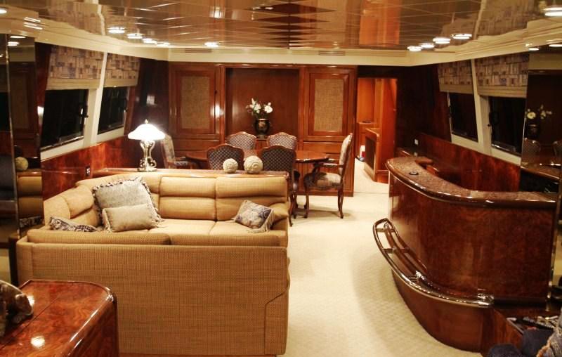 Motor yacht MERCEDES boasts a generous salon in an open plan, with an L shaped sofa on the starboard side aft and games/cocktail table to port.