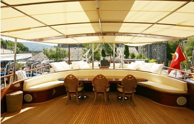 KAYA GUNERI V has a beam of 9m (30ft) making her a stable and sea worthy yacht, side decks are wide giving easy access to the forward sunpads atop the cabin house. Further forward guests may enjoy an aperitif or romantic escape ...