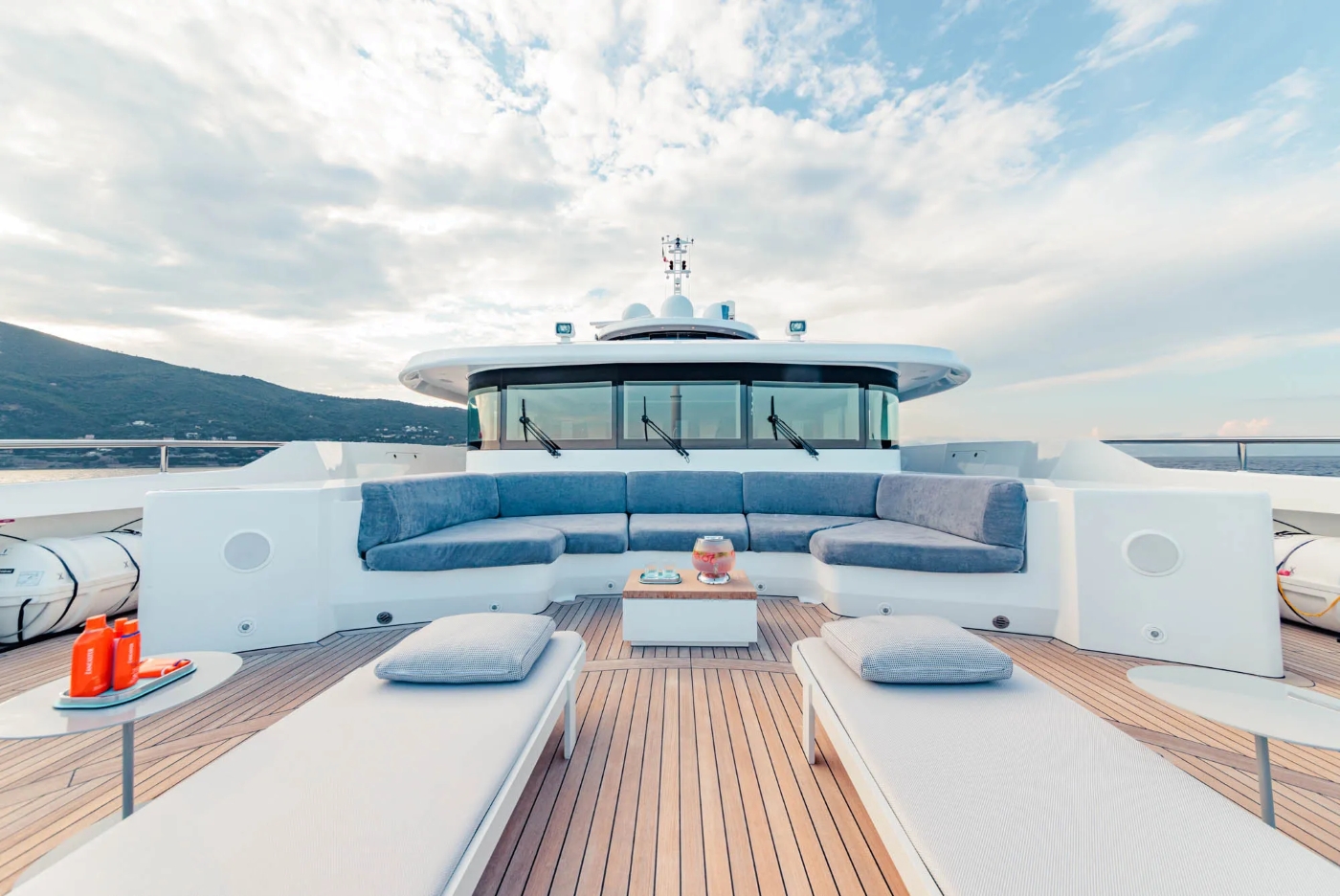 Motor yacht MySky has been superbly designed by Frank Laupman from Omega Architects, with naval architecture by the yard's in-house team, in partnership with Van Oossanen. Her interior design is by Erick van Egeraat. Accommodation is offered for up to 12 guests in 6 cabins.