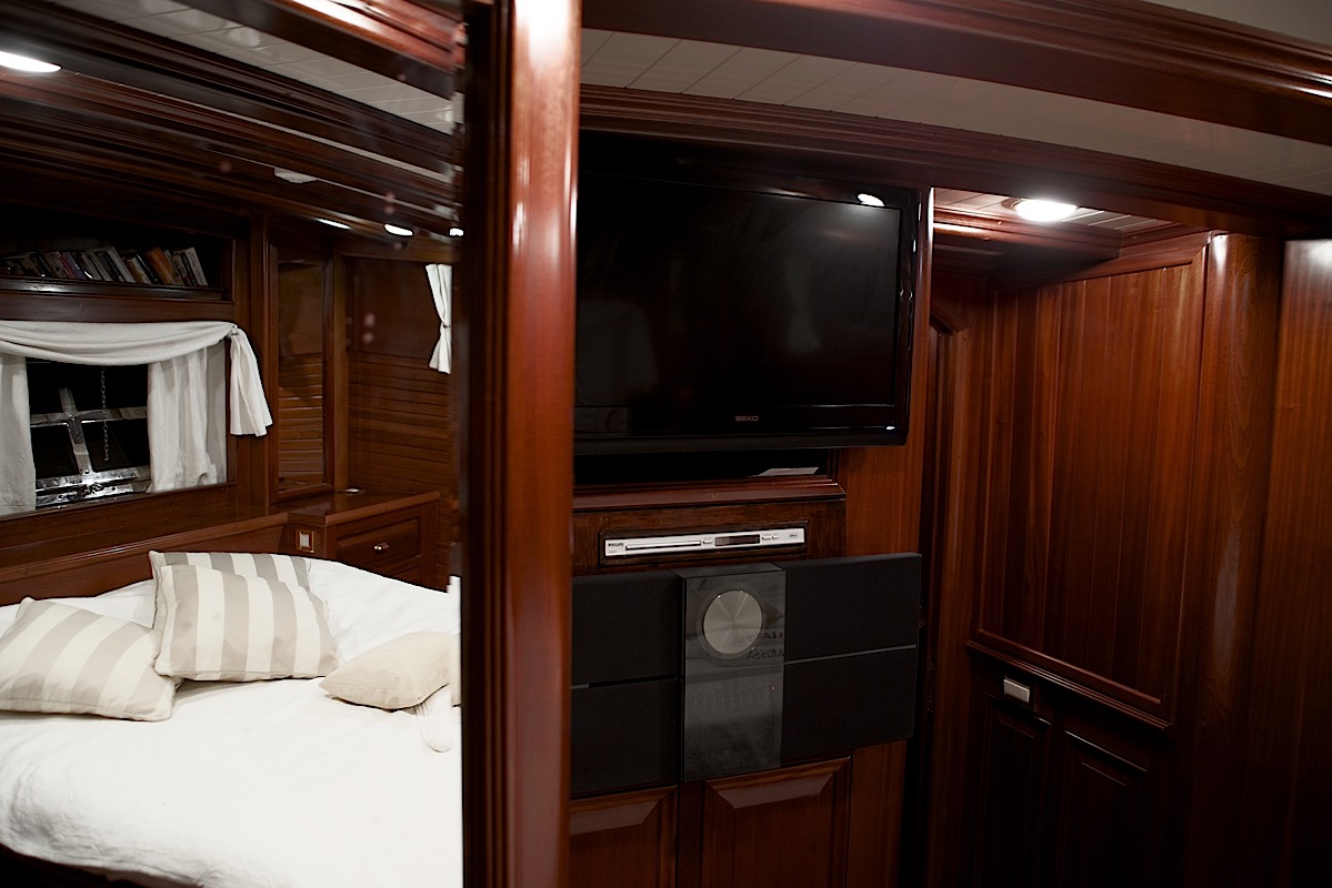 There is also a flat ceramic stove outside in the cockpit so no smell from cooking penetrates the saloon or cabins.