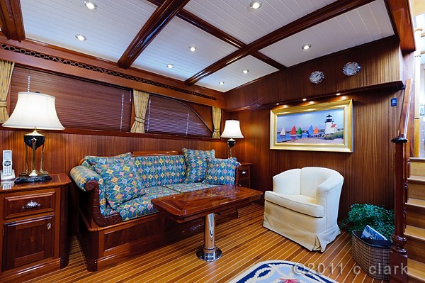 Elegant and comfortable accommodation aboard Excellence superyacht is provided in three lovely staterooms. There are also three heads. The interiors are made of mahagony, while the pilot deck and exterior are made of teak.