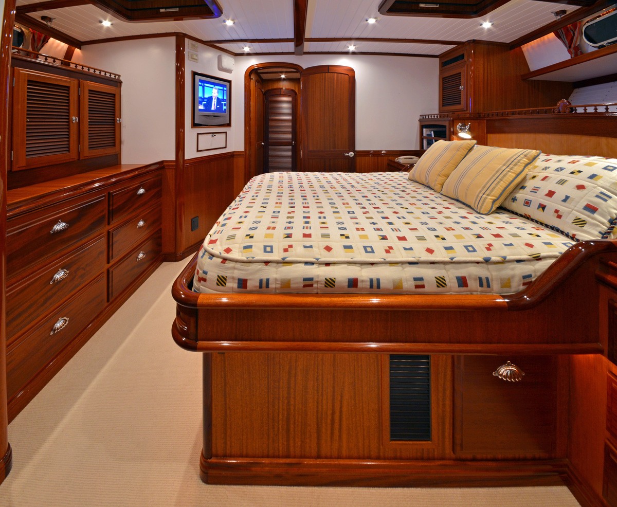 Elegant and comfortable accommodation aboard Excellence superyacht is provided in three lovely staterooms. There are also three heads. The interiors are made of mahagony, while the pilot deck and exterior are made of teak.