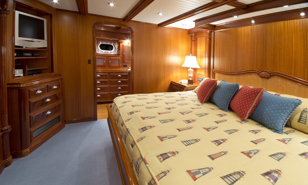 Elegant and comfortable accommodation aboard Excellence superyacht is provided in three lovely staterooms. There are also three heads. The interiors are made of mahagony, while the pilot deck and exterior are made of teak.