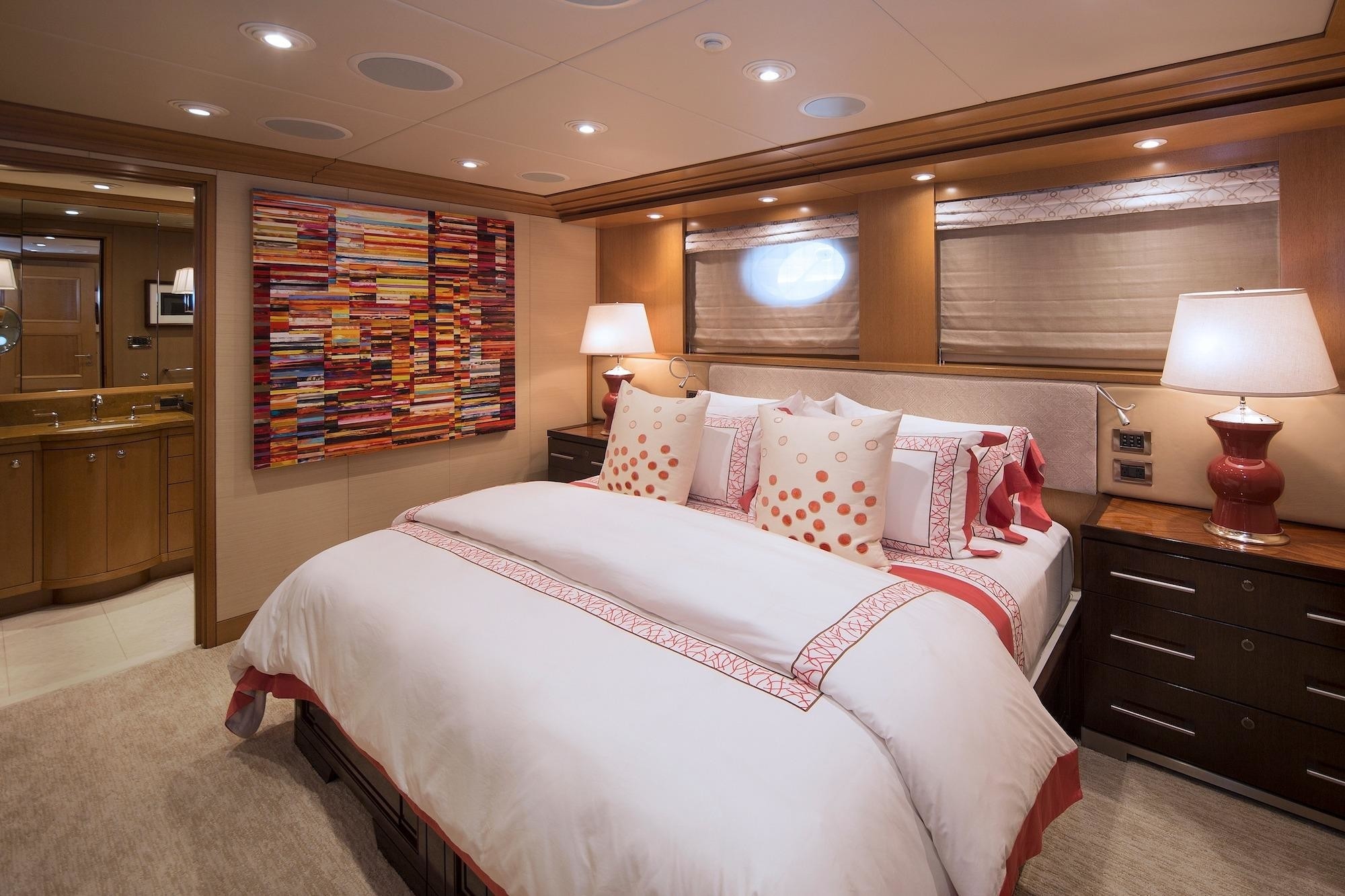 This motor yacht has a beam of 8.6m (28.4ft) and a draft of 2.5m (8.4ft); she is powered by 2 CAT 1300HP engines, capable of cruising at 14 knots. Luxury yacht PALADIN offers accommodation for up to 12 guests in 5 elegant cabins.