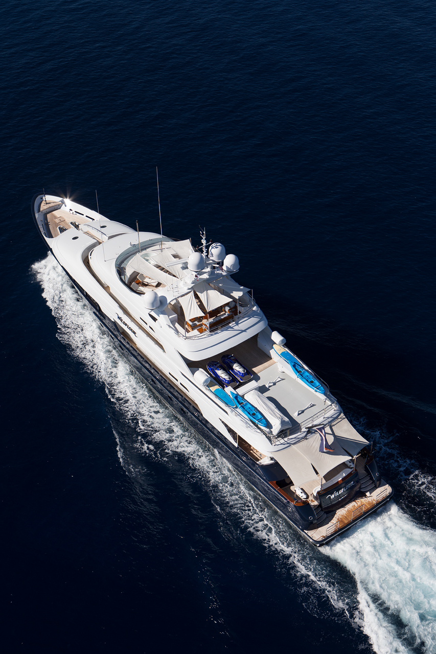 Luxury yacht PALADIN (Ex WILDFLOUR, Seven Js) was built by Delta Marine in 2008, with exterior Naval architecture by Jay Minor and interior design by Tom Stringer. She offers a deluxe setting whether indoors or out. Measuring 47.5m (156ft) motor yacht WILDFLOUR boasts a deep blue composite GRP hull and white superstructure.