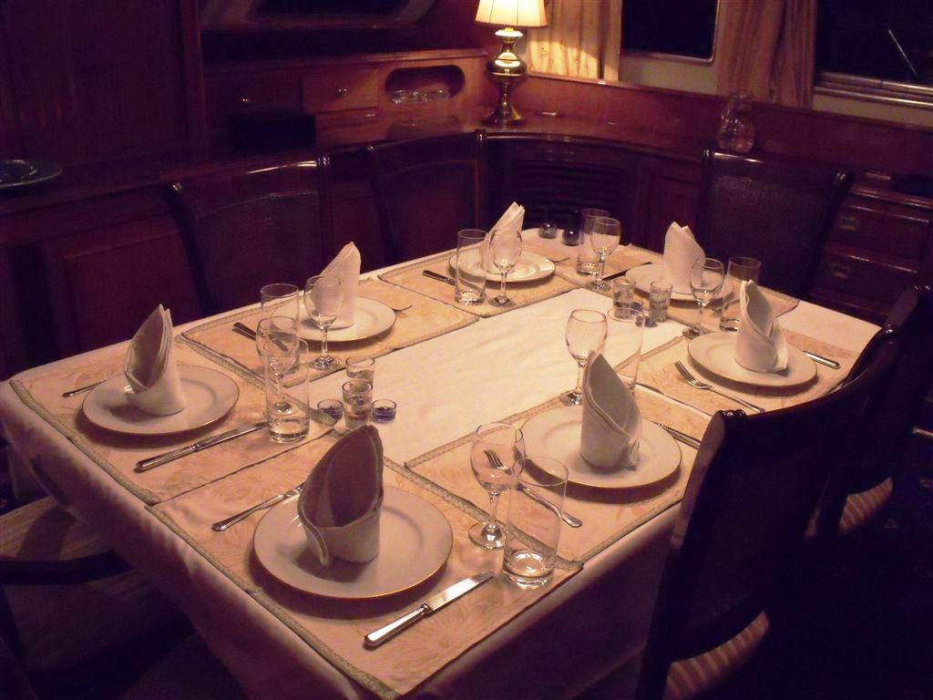 M/Y FAVORITA has a separate formal dining space on the main deck forward of the salon lounge and bar, ideal for that special occasion.