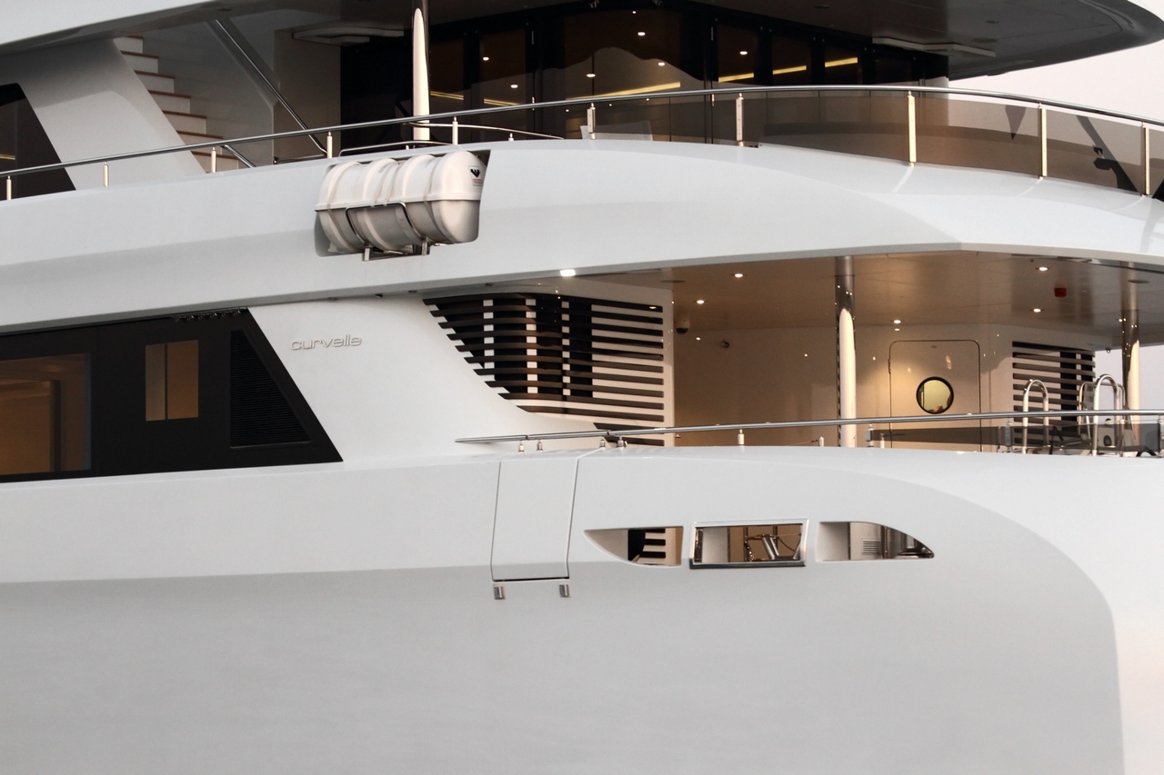 The platform can also be lowered below the water surface to launch toys and tenders, including the U-Boat Worx C-Quester 2 person submersible.