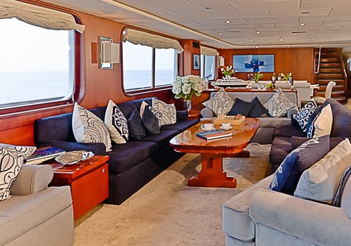 She boasts a generous aft deck that welcomes guests onboard where from sliding doors they are led through to an elegant main saloon with its formal dining area.