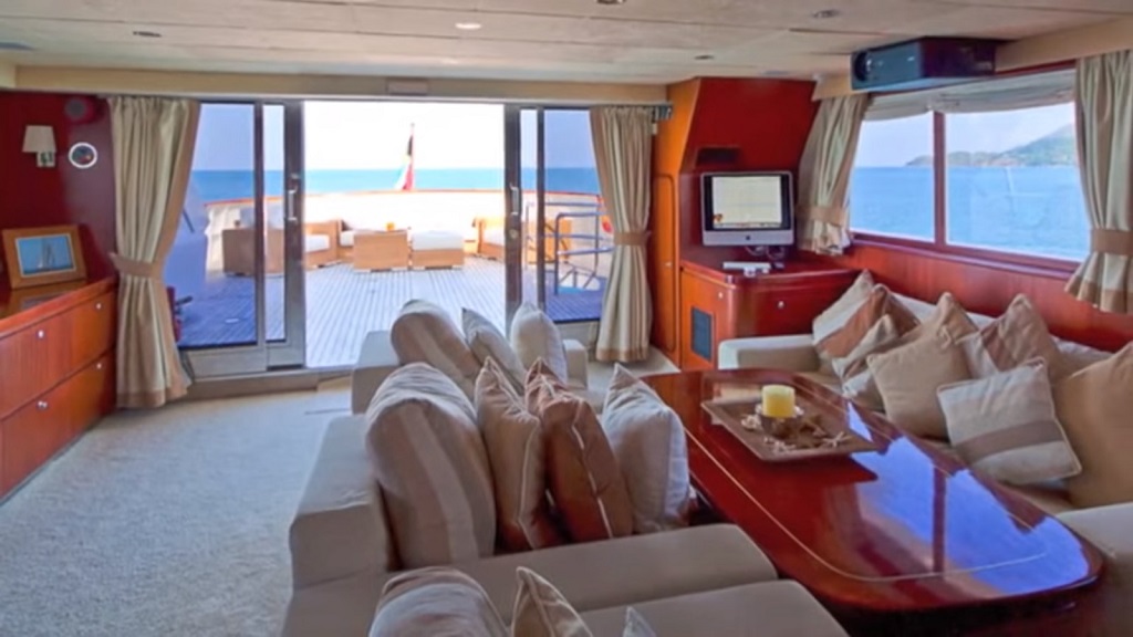 Her main lounge, with comfortable leather lounges, opens through double sliding doors onto the main deck – all providing the ideal environment for either stylish entertainment or private relaxation.
