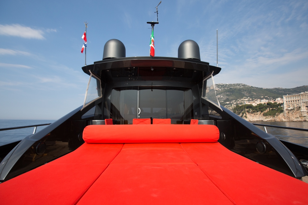 Charter Yacht FORZA 8 boasts alfresco dining on her aft deck with optional shade, for the sun worshipers a triple sunpad lays just beyond. The full beam swim platform on the FORZA 8 motor yacht is easily accessed from the aft deck on both the port and starboard sides.