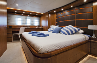 The master cabin is full beam of the yacht offering a king size bed and en-suite facilities. A VIP cabin is forward and full beam of the yacht with a double bed and en-suite facilities. Two twin cabins offer single beds and one Pullman.