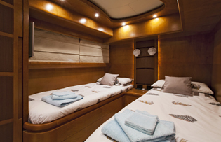 M/Y FORZA 8 offers accommodation for 8 guests in 4 generous cabins. The master cabin is full beam of the yacht offering a king size bed and en-suite facilities. A VIP cabin is forward and full beam of the yacht with a double bed and en-suite facilities. Two twin cabins offer single beds and one Pullman.