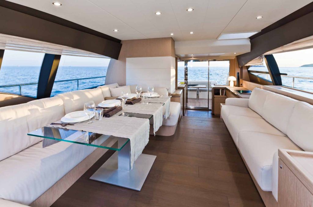 The Feretti 62 charter yacht has a salon perfect for relaxing or entertaining with its Satellite TV/DVD/Audio home entertainment system.