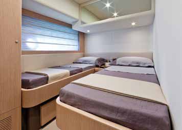 The Feretti 620yacht accommodates up to 6 guests in 2 doubles and 1 twin/double convertible stateroom, all with private bathrooms.