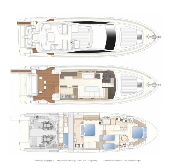 The Feretti 62 charter yacht has a salon perfect for relaxing or entertaining with its Satellite TV/DVD/Audio home entertainment system.
