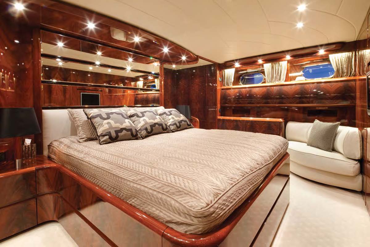 Motor yacht KARANITA boasts an elegant interior. The soft furnishings are a subtle neutral tone while the panels are a deep rich high gloss mahogany.