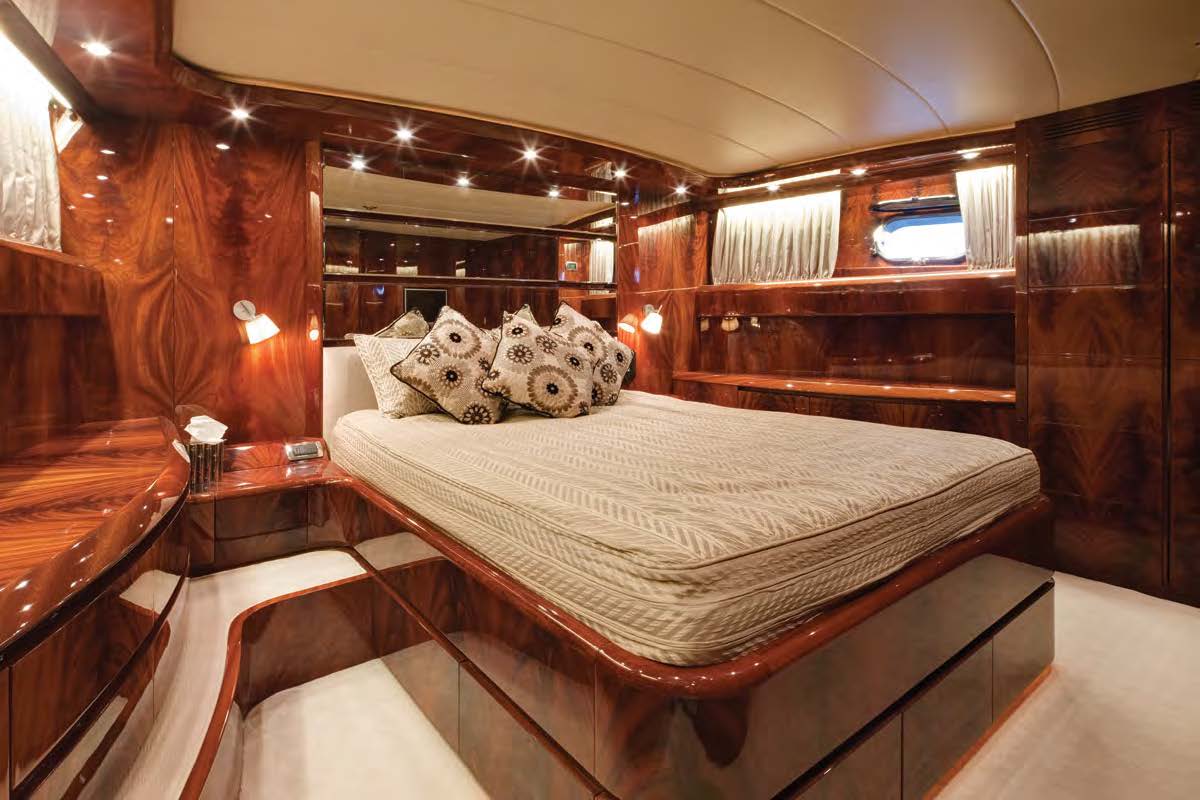 Motor yacht KARANITA boasts an elegant interior. The soft furnishings are a subtle neutral tone while the panels are a deep rich high gloss mahogany.
