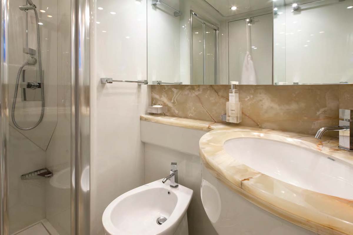Swimmers and water sports enthusiasts will enjoy the extended swim platform making water activities easy for all. Motor yacht KARANITA has plenty of sunning options. Forward on the main deck a triple sunpad is ideal for an intimate escape.