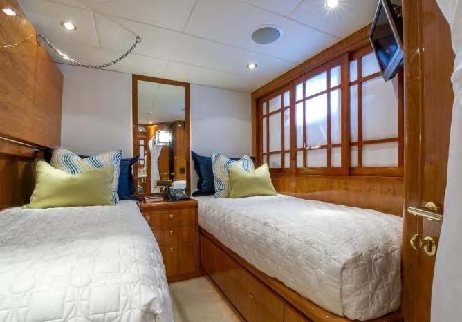 Active guests will find the extended swim platform, with stainless steel hand rails, perfect to make the most of the water toys on offer. If sunning and relaxing is on the itinerary, the large foredeck sunpad is sure to please.