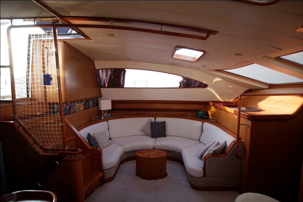 The pilothouse features large windows and a comfortable lounge and the lower salon features another u shaped settee and dining table. The dining area leads to the fully equipped kitchen and the crew area.