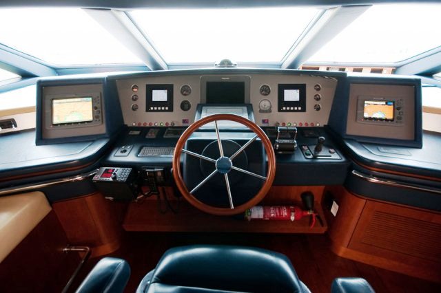 Her fly bridge features a large U shaped settee with table for dining al fresco and there is a bar and Spa Pool as well as sunbeds on the fly bridge deck. The aft deck also has an alfresco dining table covered by the hard top, with a retractable bimini at the aft.