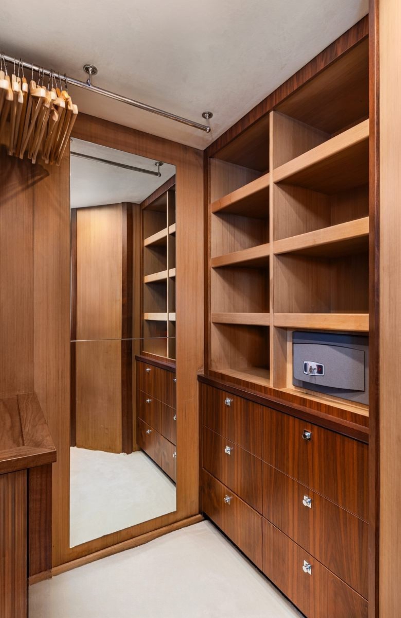 The entire space is adorned in fine wood panels and flooring, large panoramic windows and a unique skylight allow plenty of natural light.