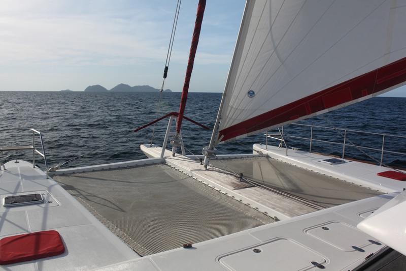 Further forward there are trampolines for sunbathing or watching the water rush by while under sail.