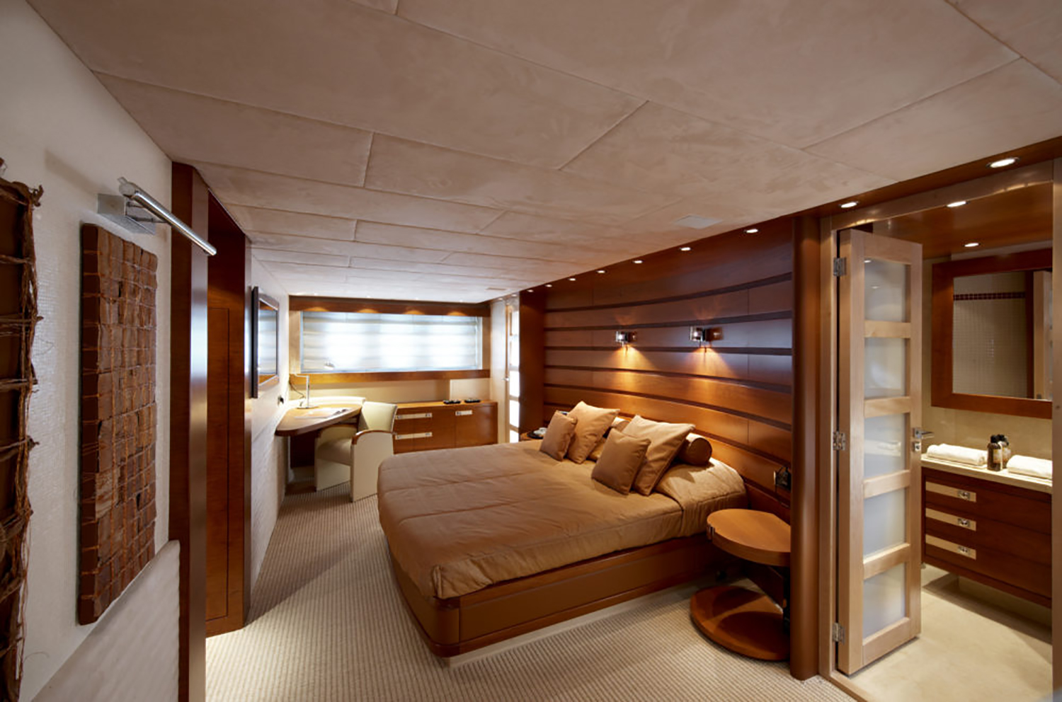 The dining area seats 10 guests in luxuious envitonment. The lower deck hosts all guest cabins, including a full-beam master suite.