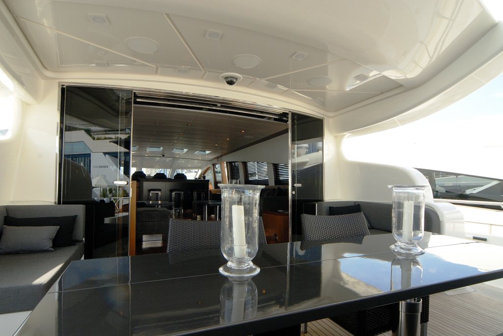 She boasts a wonderful aft deck with an alfresco dining table, large sunbeds with sun umbrellas, a swimming platform and a further sunbathing area located on the foredeck.