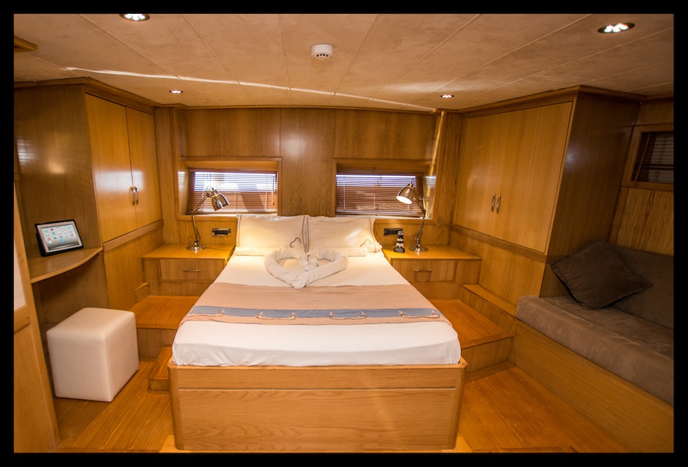 Turkish Gulet ALBATROS A offers delux accommodation for 8 charter guests in a Master Cabin, a VIP cabin, a Double Cabin and a Twin cabin. Each cabin has an ensuite bathroom, a TV and music system. The cabins are air-conditioned for 6-8 hours per day inclusive in the rate.