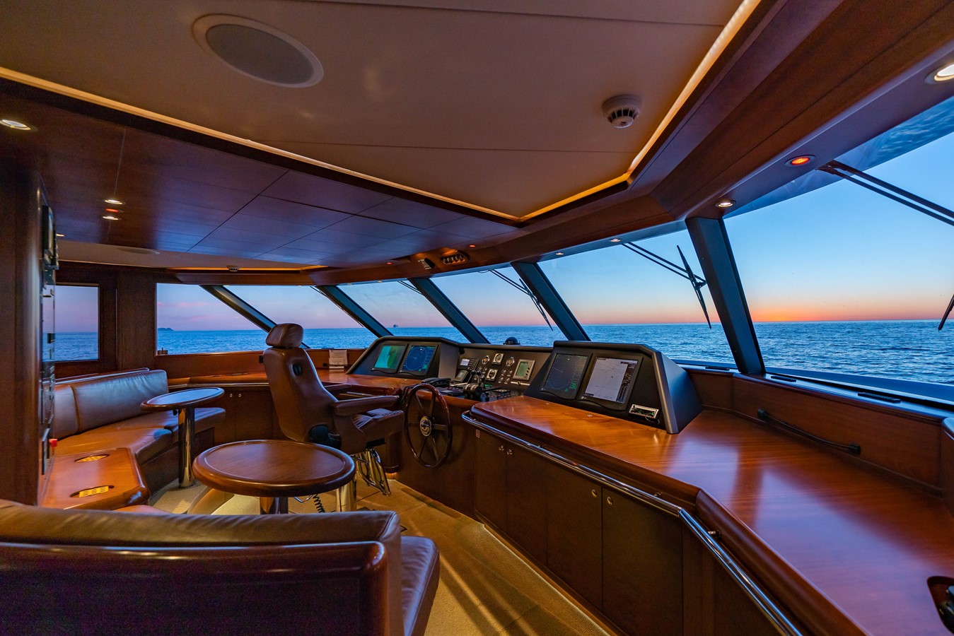 Solaia’s bridge deck and flybridge are designed for maximum privacy, while her sun deck boasts a large Spa Pool Spa with nice sunbathing areas on either side. Solaia’s sundeck also offers a covered bar and a large solarium, providing a panoramic view forwards.