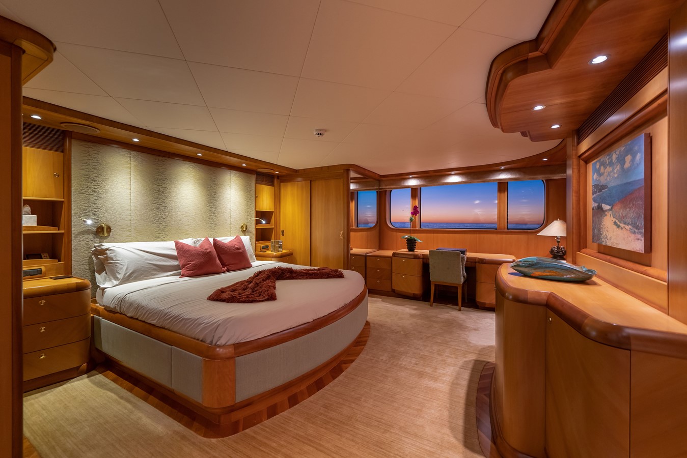 Her interior design by Felix Buytendijk can accommodate up to 8 guests in 4 luxury cabins with ensuite bathroom facilities, while a crew of 7 ensures everyone has a pleasant and memorable charter vacation.