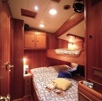 Aft of the guests cockpit, is the helm and working cockpit. Further aft an open teak deck area is spacious, ideal for relaxing or taking in all the sailing action.