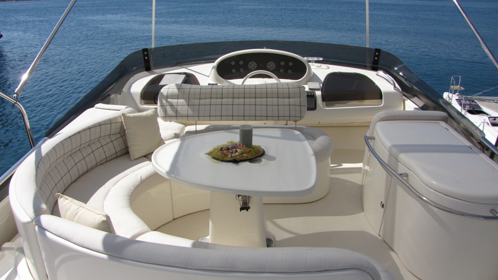 The aft deck offers an al fresco dining table and the flybridge provides a relaxing sunbed area that adjoins another al fresco dining area offering many hours of pleasure.