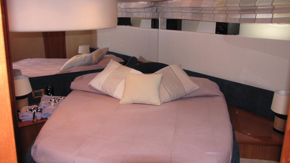 The Azimut yacht POSEIDON offers accommodation for up to 6 charter guests in 3 cabins including a master cabin, a double cabin and a twin cabin which can be converted into a double cabin if required. All three cabins are fully air-conditioned.