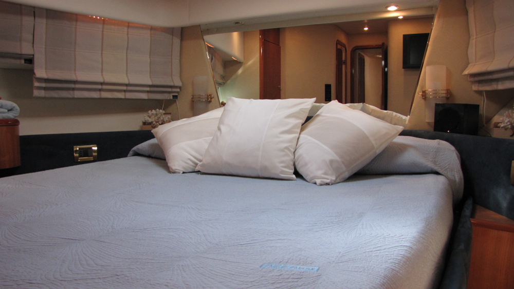The Azimut yacht POSEIDON offers accommodation for up to 6 charter guests in 3 cabins including a master cabin, a double cabin and a twin cabin which can be converted into a double cabin if required. All three cabins are fully air-conditioned.