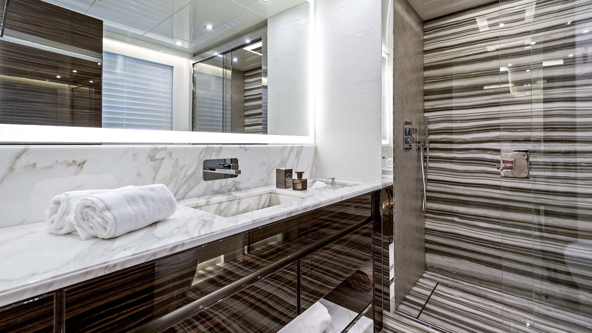 These include a generous master suite on the main deck, which features a king size bed, private gym, and sauna, huge master bathroom, as well as office corner and walking wardrobe. In addition, there are four guest cabins on the ...