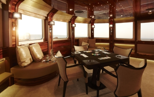 There is also a panorama salon forward for charter guests' entertainment. The full-beam Owner's suite, on the other hand, is located on the main deck. with his and hers bathrooms along with a very spacious salon and dining area.