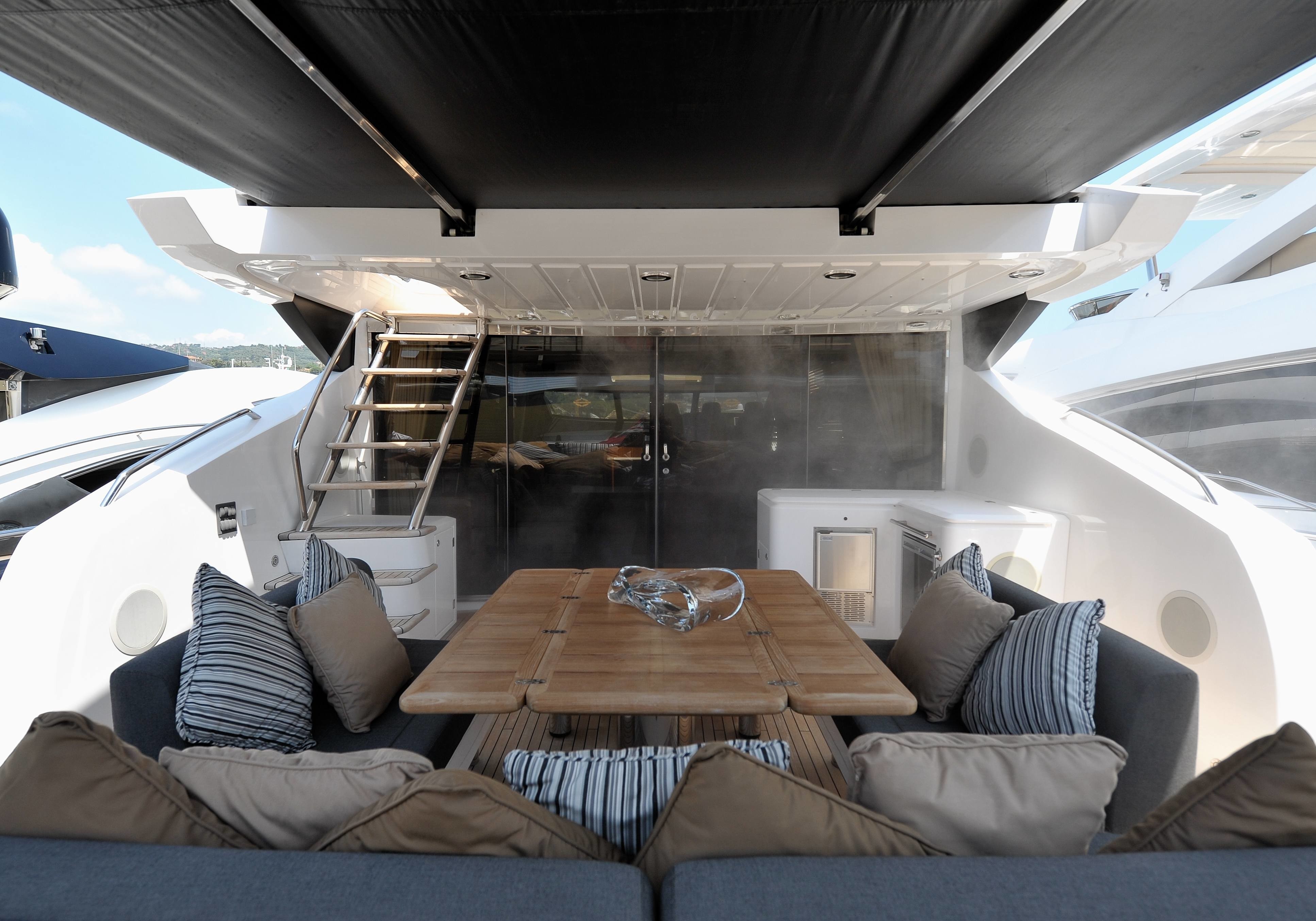 Aft an extended swim platform is ideal for relaxing in the sun, having a quick dip, or enjoying one of the many water toys on offer. Guests may want to experience the exhilarating ride from the comfort of the flybdridge, while ...