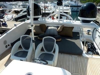 Aft an extended swim platform is ideal for relaxing in the sun, having a quick dip, or enjoying one of the many water toys on offer. Guests may want to experience the exhilarating ride from the comfort of the flybdridge, while ...