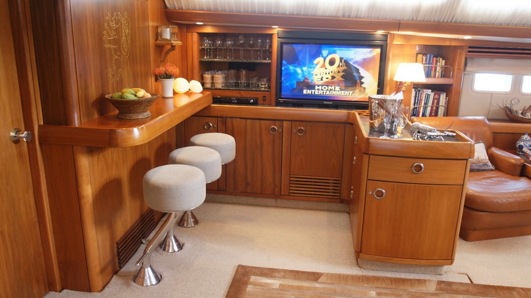 The main companion way leads from the salon into the guest cockpit with wrap around seating and a leafed alfresco dining table. Further aft the helm cockpit offers further seating, both cockpits have optional shade if required. LETEZIA has wide decks, when not under sail the foredeck is perfect for sunning or simply relaxing.
