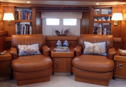 Charter yacht LETIZIA has an open spacious atmosphere, with interior styling by Andrew Winch featuring warm wood panels and a neutral décor throughout. The salon features a formal dining area on the port side with a large U shaped sofa, ideal for lounging.