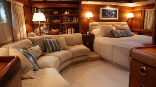 Sailing yacht LETIZIA can accommodate up to 7 charter guests in 3 en-suite cabins. The master cabin is aft and full beam of the yacht with a king size bed and sofa, a twin cabin is on the port side forward of the master cabin with 2 single side by side beds. The VIP cabin is forward on the port side with a double bed and upper Pullman berth.